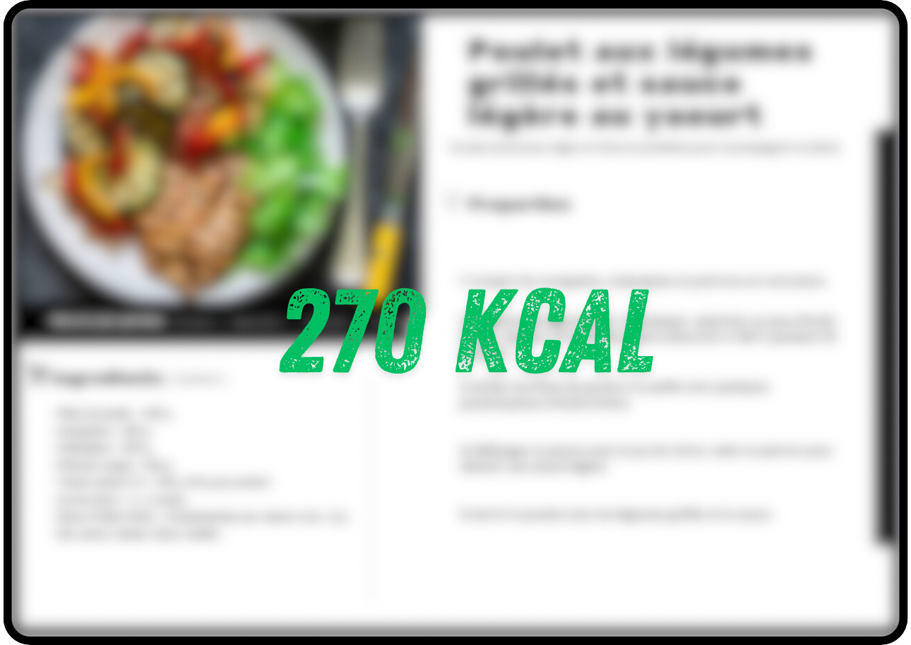 Détails complets sur les macronutriments, les calories, et les étapes de préparation pour chaque plat.